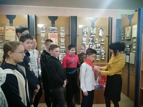19 мая в МБУ «Каракашлинский краеведческий музей имени Шарафиевой С.Ш.» провели мероприятие по Пушкинской карте, где была представлена выставка атрибутов ко Дню пионерии. Гульнара Шатовна рассказала ребятам о Дне пионерии. Как появилась пионерия, как принимали в пионеры, какие символы и традиции были у пионерской организации. На примере ребята, узнали, как принимали в пионеры, научились повязывать красный галстук.