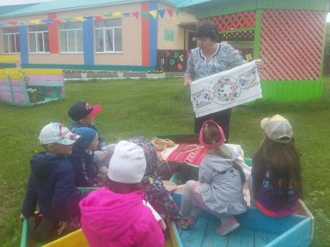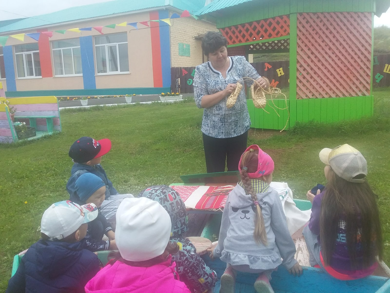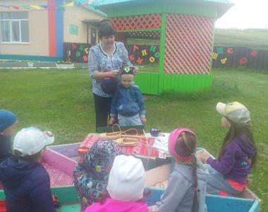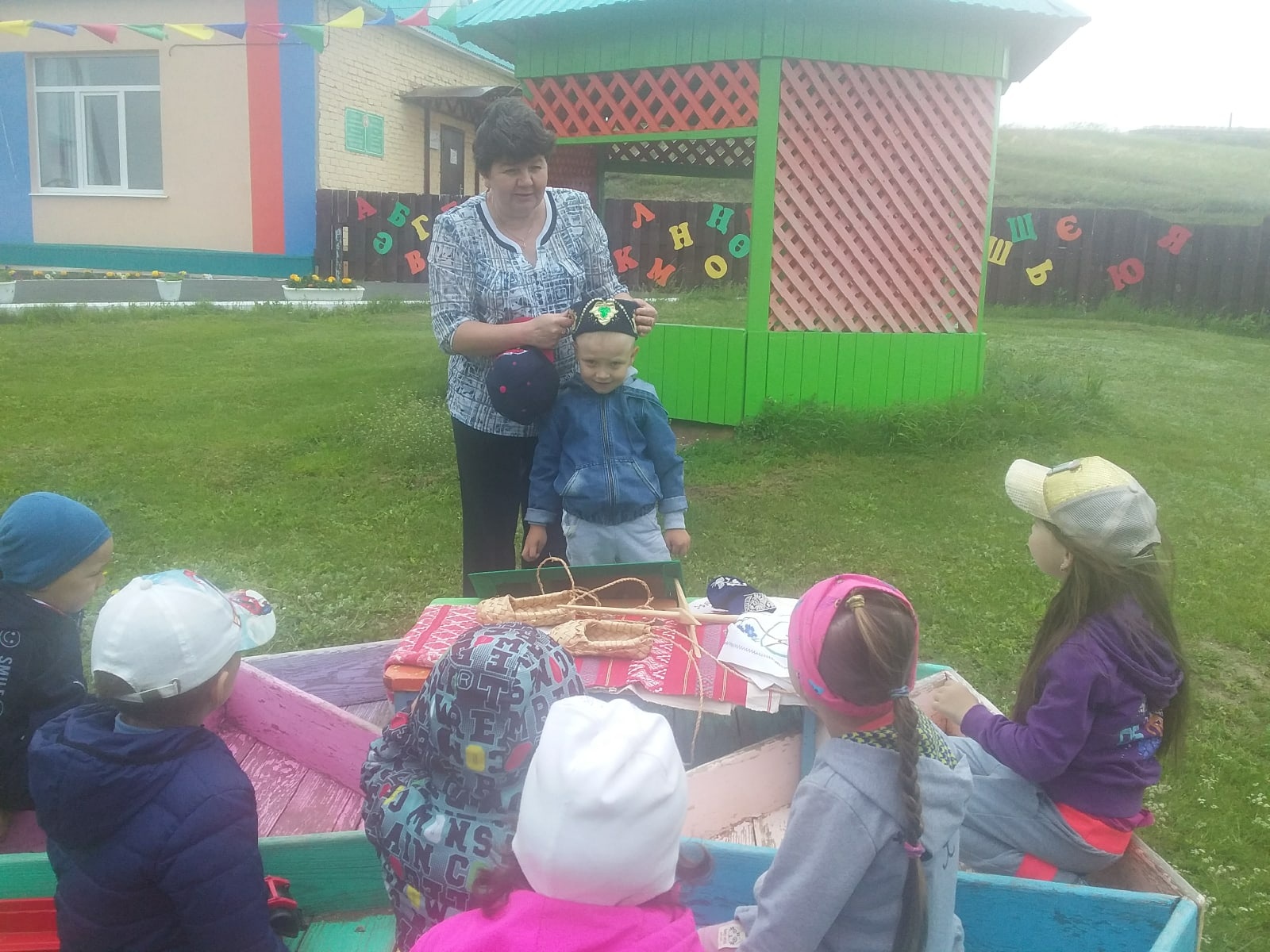 Для воспитанников детского сада «Лейсан» прошло мероприятие «Бабушкин сундучок». Ребята ознакомились с национальными костюмами, украшениями. Примерили тюбетейку и калфак. А лапти… не мало заинтриговали юных друзей. А они оказались не очень удобными! Ребята с удовольствием и активно приняли участие.