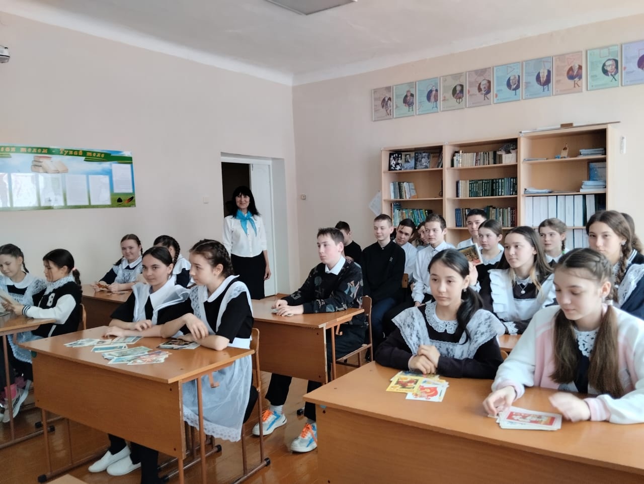 Директор МБУ «Каракашлинский краеведческий музей имени Шарафиевой С.Ш» Гульнара Шатовна провела музейный урок «Гордимся, помним!» по Пушкинской карте для учащихся МБОУ «Байрякинская СОШ». Цель мероприятия — воспитывать чувство патриотизма и гордости за свою страну, героизм народа, знать и чтить память героев страны. Состоялся урок патриотизма, посвящённый памяти героя Великой Отечественной войны, нашего земляка Фатиха Зариповича Шарипова. Гульнара Шамсуллина познакомила ребят с биографией Фатиха Зариповича и его подвиге. Участники мероприятия с интересом слушали как старший лейтенант Шарипов сбежал из госпиталя, как узнал о прибытии железнодорожного эшелона с танками «Колхозник Татарии» и повёл в бой танки из родного района. Ребята узнали о том, что в 1944 году за умелые действия при переправе через Днепр, захват плацдарма, за мужество, смелость и героизм Фатиху Шарипову присвоено звание героя Советского Союза. В ходе мероприятия ребятам также была показана презентация «23 февраля: история и традиции Дня защитника Отечества». Учащиеся посмотрели почтовые старинные открытки из архива историко-краеведческого музея, рассказывающую о боевом пути фронтовика и «Слава защитникам Родины!».