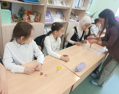 25 апреля сотрудники Историко-краеведческого музея провели мастер-класс для учащихся 3 А класса МБОУ «Уруссинская гимназия» по изготовлению броши «Георгиевская ленточка». Мероприятие началось с рассказа о истории георгиевской ленты, о том, что название ленточки происходит от ордена Святого Георгия, который был учрежден 26 ноября 1769 года императрицей Екатериной II. Цвета ленточки - черный и желтый - имеют свое историческое значение и символизируют цвет пороха и огня. Изготавливая декоративную брошь, дети прикоснулись к истории появления Георгиевской ленты, почувствовали себя причастными к общему подвигу и памяти. Все ребята старались, и каждый изготовил себе в память символ Победы, вложив частичку своей души, который может стать прекрасным украшением или подарком.