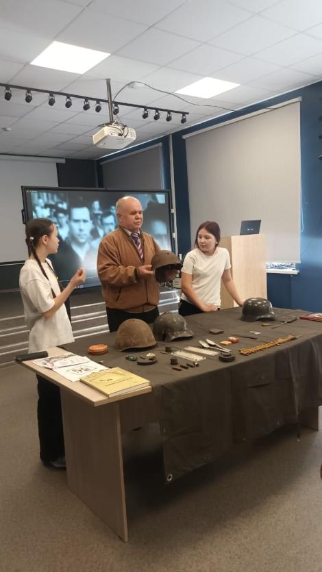 Ребятам была представлена выставка, они смогли ознакомиться более детально: рассмотреть каждый предмет, представить, как он использовался во времена ВОВ.