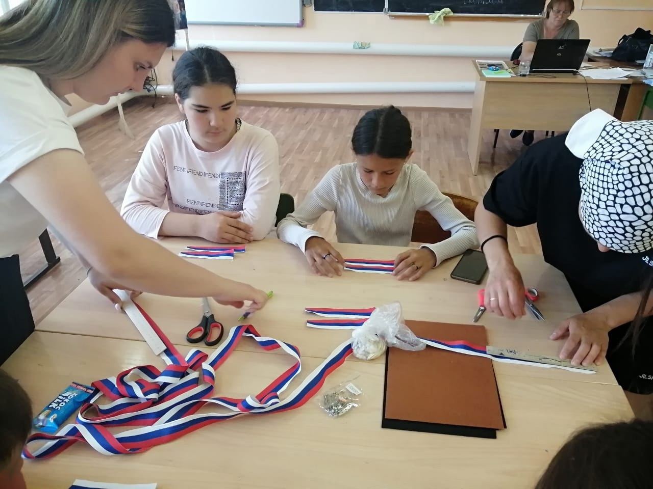 Сотрудник музея Эльвира Рамазановна провела мастер-класс «Брошь ко Дню России в технике канзаши». Ребята очень старались, каждый вложил в свое творчество отвару и гордость за нашу страну. В результате чего Мы получили красивые «Нагрудные знаки» своими руками.