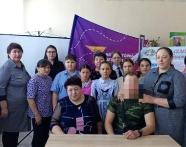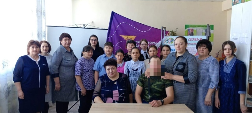 Глава семьи Зайтун Шарафутдинов, приехал в краткосрочный отпуск из зоны боевых действии. И всё же их семья нашла время, чтобы встретиться с учащимися школы.